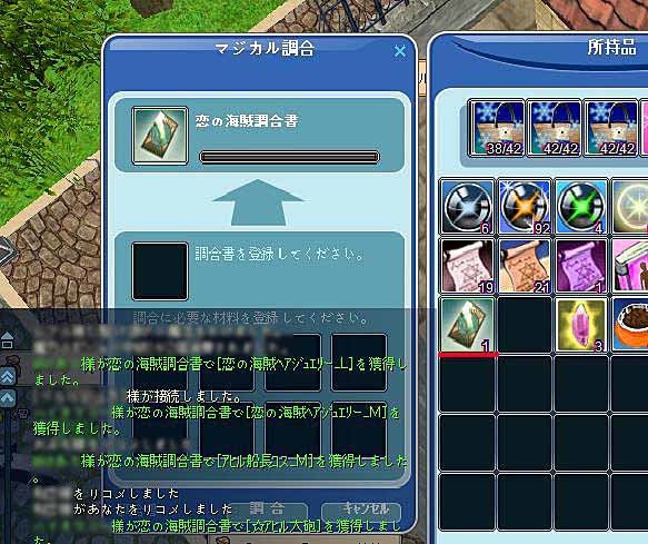 緑文字がいっぱい出てたので…欲を出して恋の海賊調合所をやってみるものの最高位が製造カードという情けない結果に終わったカイロです
