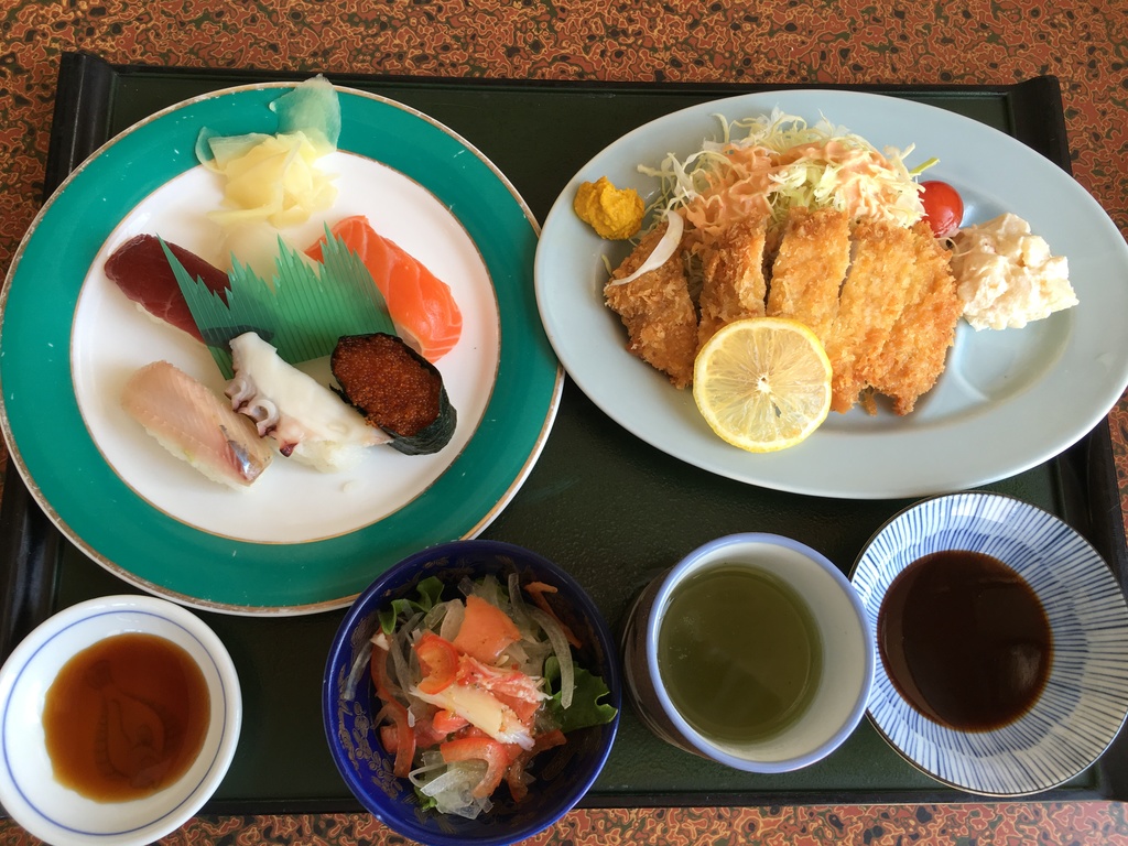 和食のお店で食べてきた寿司ととんかつのセット。意外な組み合わせw