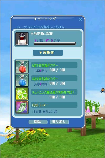 3、4段目は初級草で とりあえず経験値のみ。