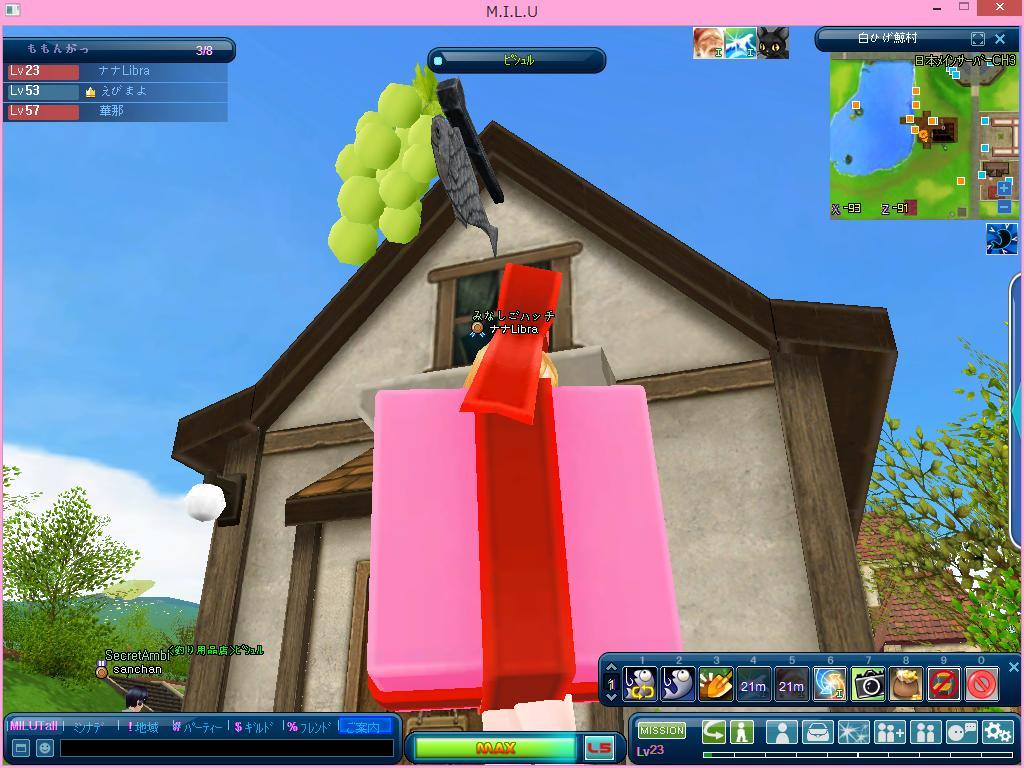 みんなおなじみのピシュルの釣り小屋の看板の上に、おおきなマスカットが!!