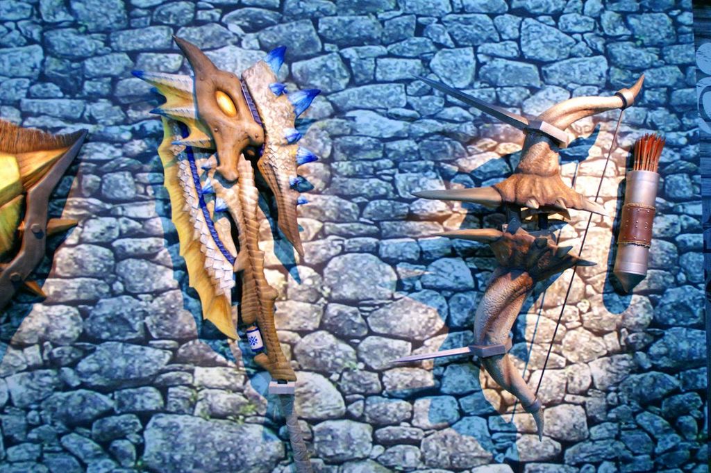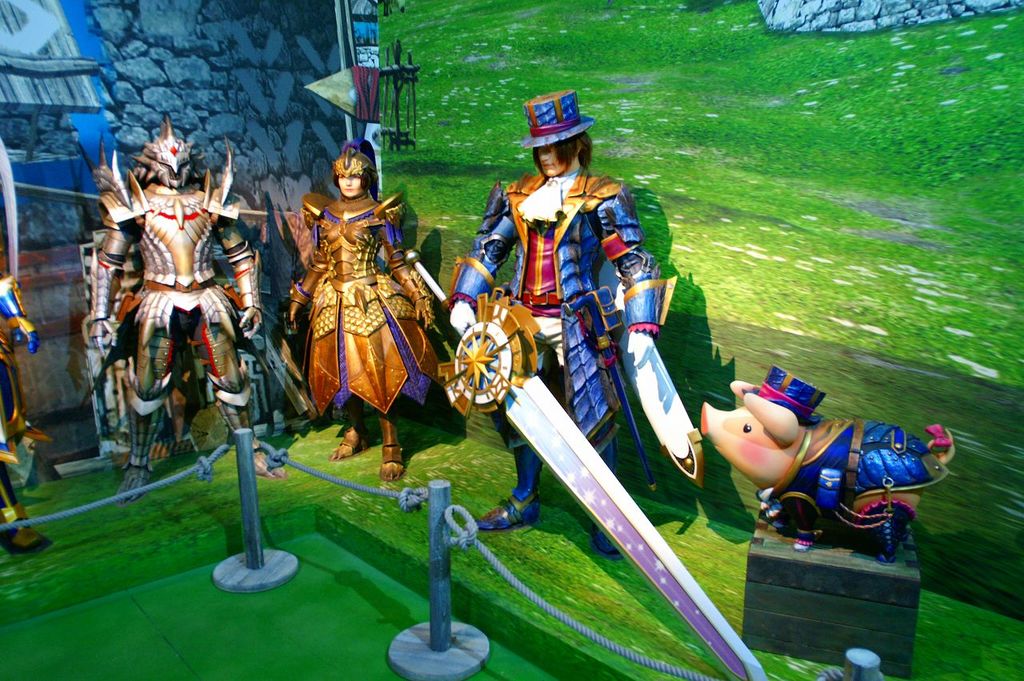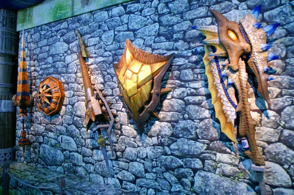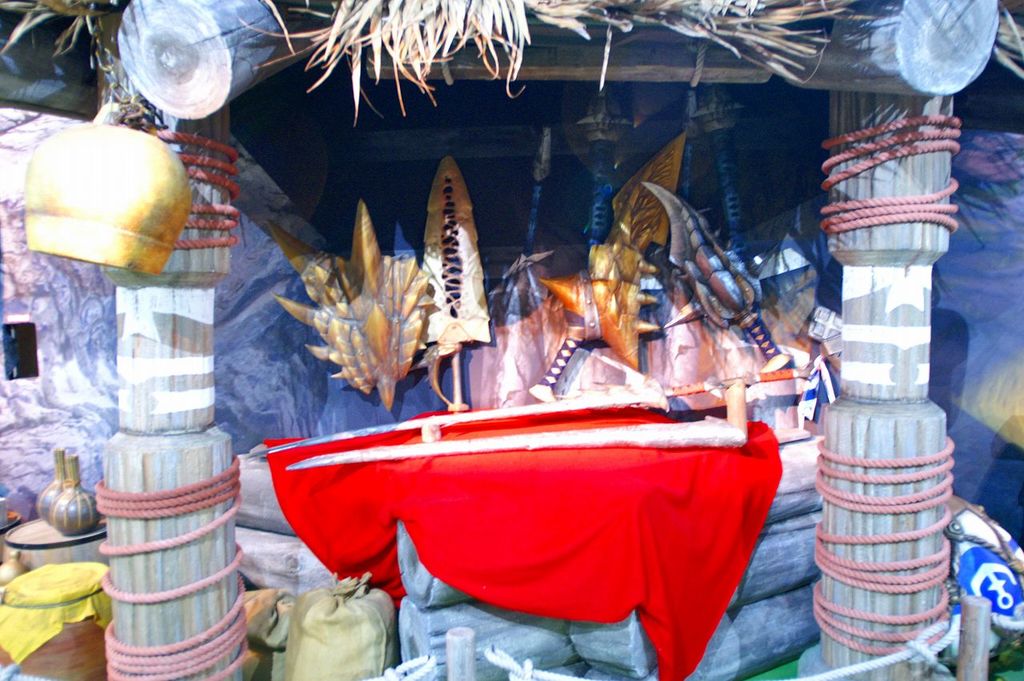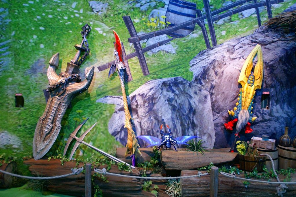 過去の「モンスターハンター」で展示されてきた、コラボ武器や装備を展示し「ベルナ村」の世界観を3Dで再現・・・
