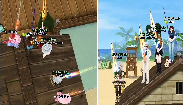INしたらバディのあやさんが呼んでくれて、飛んだら屋根の上で釣ってるのでびっくりw