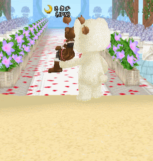 式場から花嫁を連れて逃げるクマの図