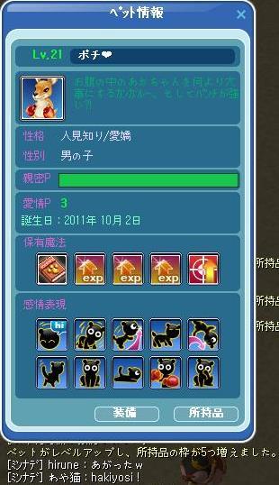 ポチ❤が21レベになって、所持品枠が、30個の力持ちになりましたん♪