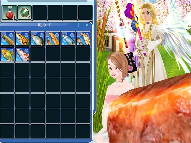 過去のイベント時に、見た目とエモで欲しくて作っておいたりんご幼稚園服(エモは、「転ぶ」)。それと、今回のイベントでゲットした☆零れ桜イヤリング(エモは、「ぺったん座り」)。両方とも、60になったので着用できますwww