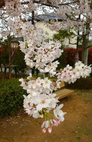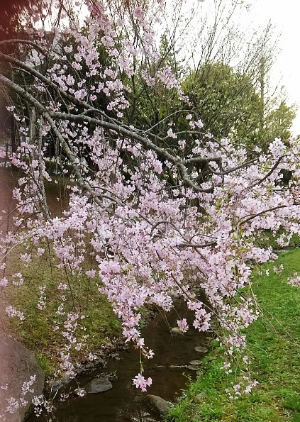 少し水が流れてるとこの、しだれ桜→