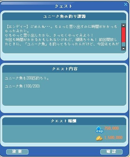 Lv111になるための開放クエスト ユニークスターで 釣ってるんですが