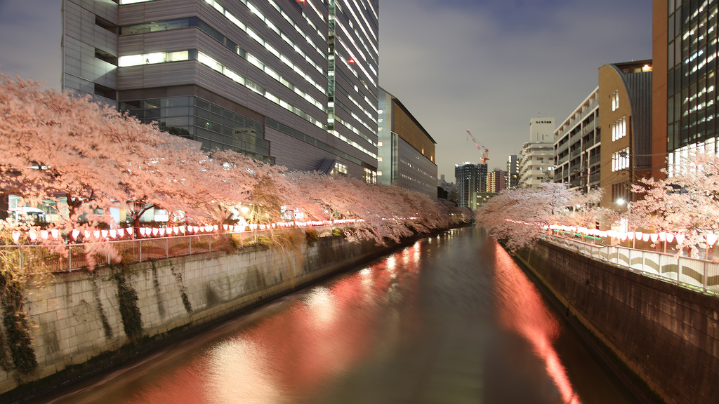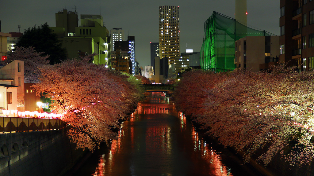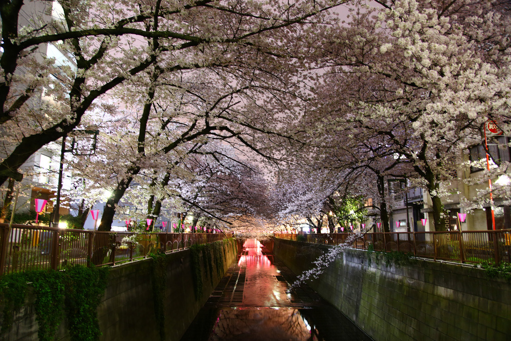 都会の夜桜すごくきれいだ!!!
