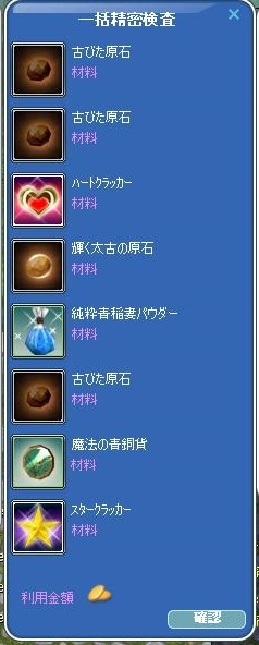 で、精密はというと、最初2個やってかけらと銅貨だったかな。SS撮り忘れ><