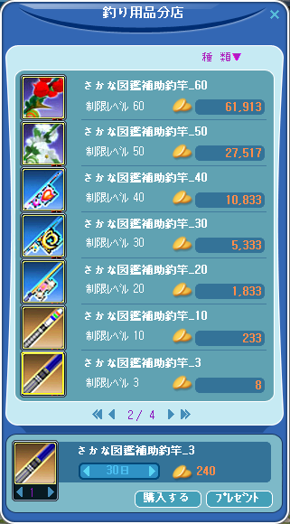 先日、魚図鑑を完成させる為に低LVの竿を作成したところ、その釣れるスピードの速さを改めて痛感しました。