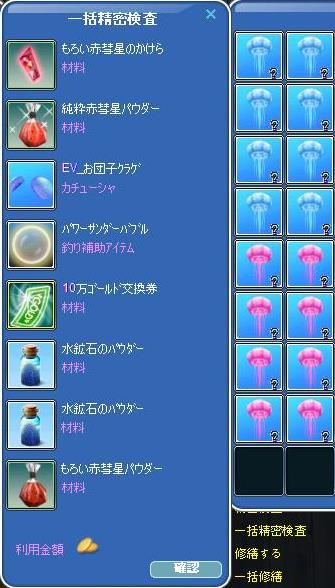 | 竿ゲット & 緑文字ゲット & お団子クラゲ修繕可(o´エ`ノノ゙ おめでとうございます♪ |