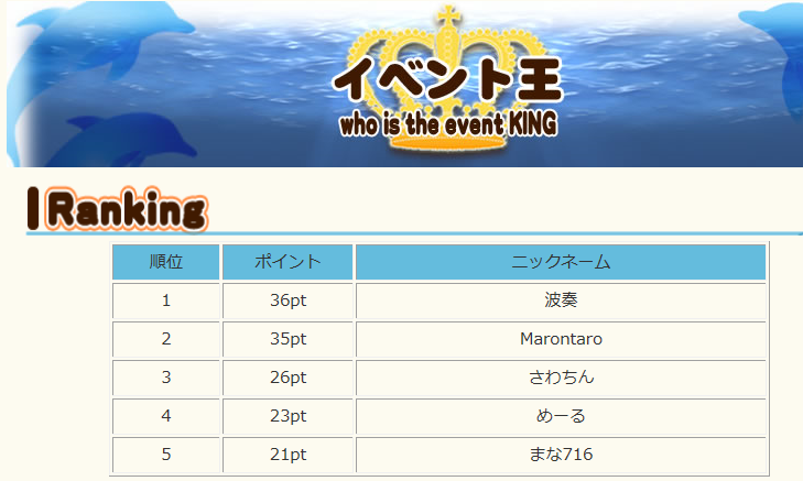 今月から参加しているイベ王で奇跡の順位゚・*:.。.