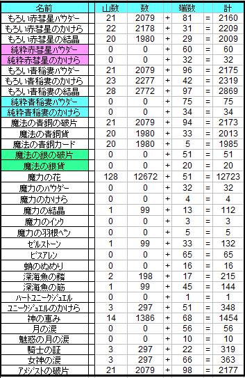 ひさびさに所持材料チェックしたら
