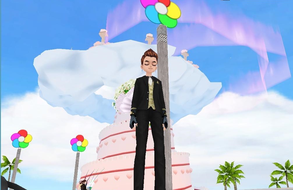 大きなケーキの上でハト釣り |