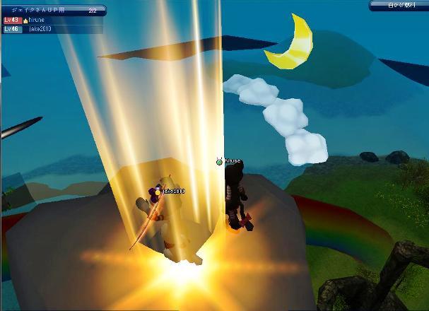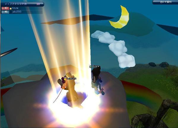 この状態で釣り上げて、テレポで雲の上に戻るのは・・残念ながら、出来ませんでした。