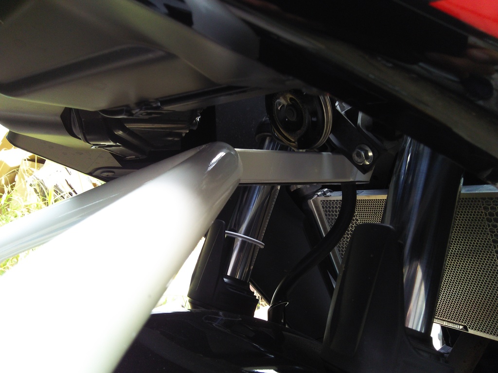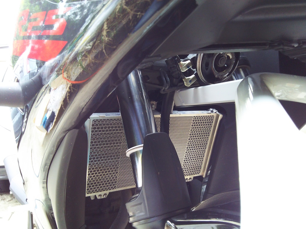 ホーンやら、ブレーキホースの関係のステーがありまして、ギリギリですwww 外すのメンドクサイのよ、カウルあるから・・・