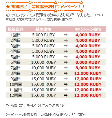 今回のアップデートで、やっと倉庫拡張割引がきました♪