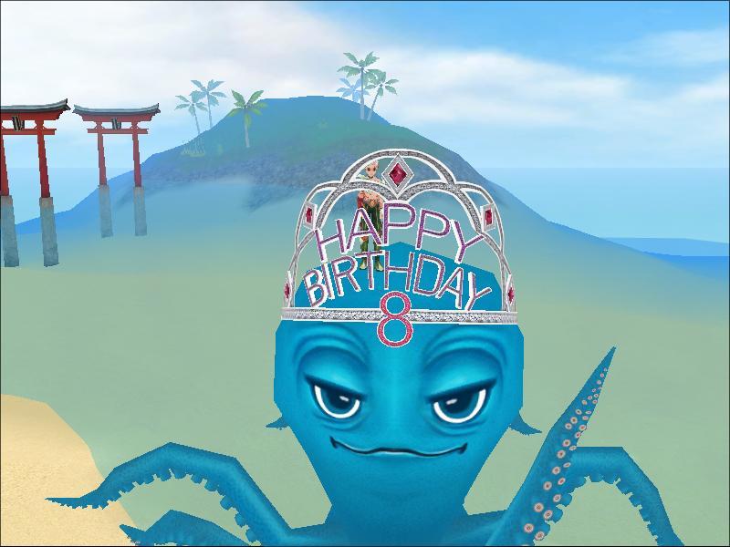 青い大蛸の上で