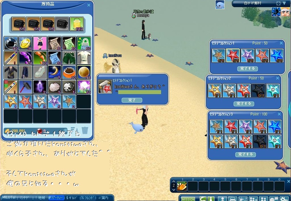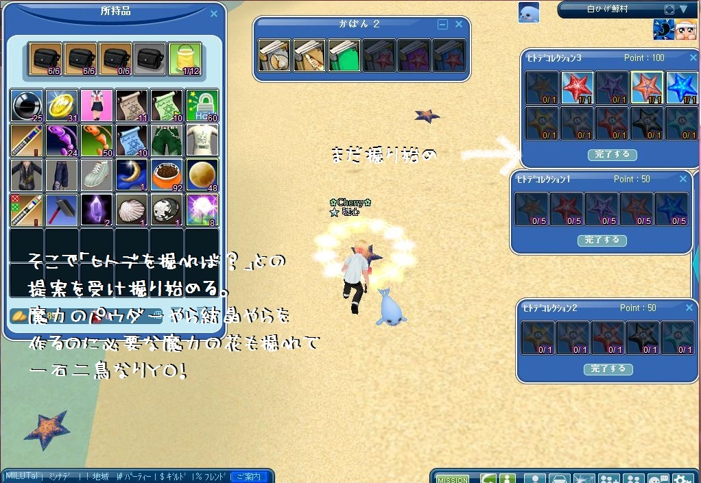 余った ヒトデ&貝は露店にて売るようにね