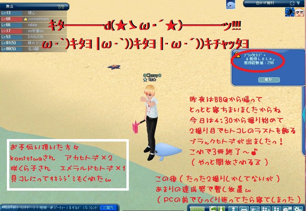 こなみさんから伝言、竿切れたら、ヒトデ、貝、学校コレブをやるようにです^^