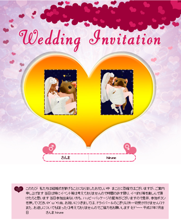 (*゚▽゚)/゚・:*【祝 ご結婚】*:・゚\(゚▽゚*)