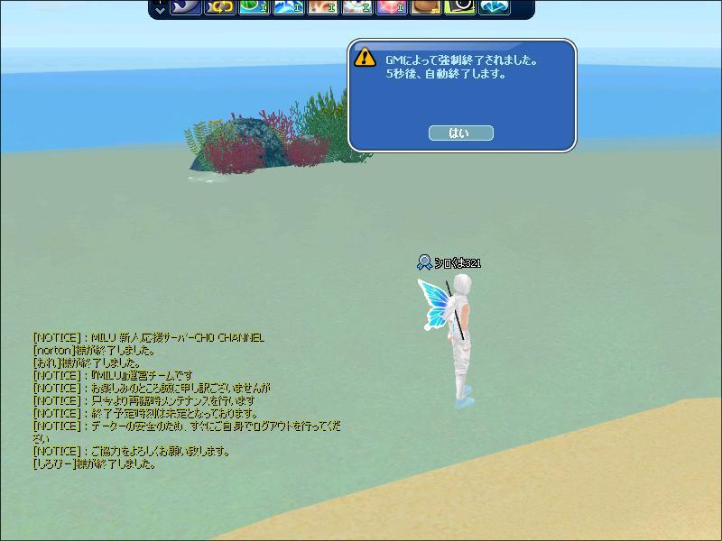 昨夜臨時メンテ終了予定時間後にいつもの浜辺に忍び込んだ時のSSです。