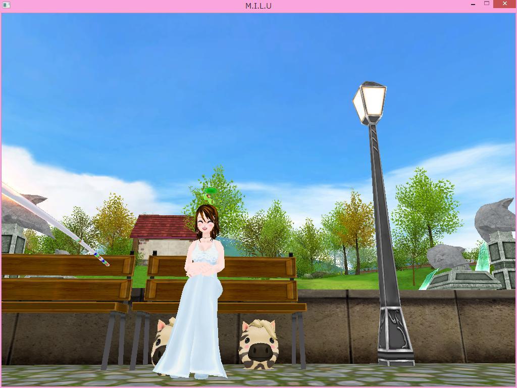 カメラに向かってほほ笑む白いワンピースの女性の足元に。。。