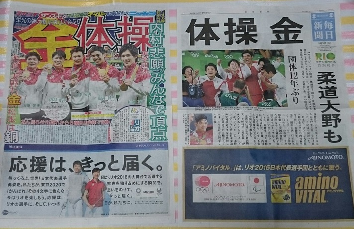 2枚目の個人総合の時の朝日新聞は4駅目でギリギリget