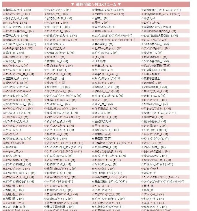 今回の景品は 過去の全コス ではなく リスト内の☆コスから好きな物 に変わったので