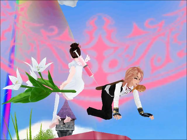 大きな注射を お尻に ブスリ><