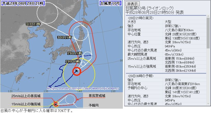 かなりやばい台風が東日本に近づいてます