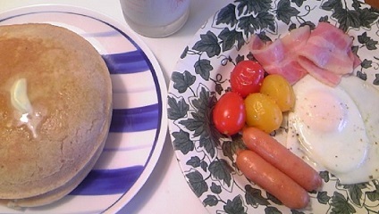 ホットケーキではなく、家に買い置きがあった「はだか麦のパンケーキ」です!
