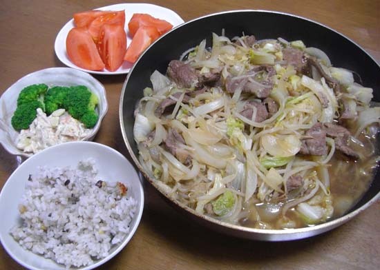 10穀米・ジンギスカン・冷やしトマト・サラダです
