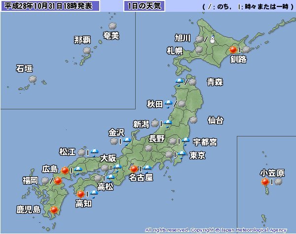 明日は雨マークがほとんどのところにw