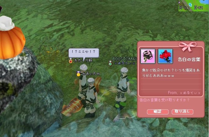ここの場所で告白とかしたらいい感じじゃないかなー?とか思ったらちょうどめるちゃんが帰ってきて、