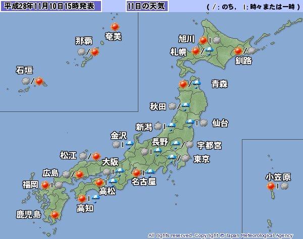 東海地方は朝まで雨かな