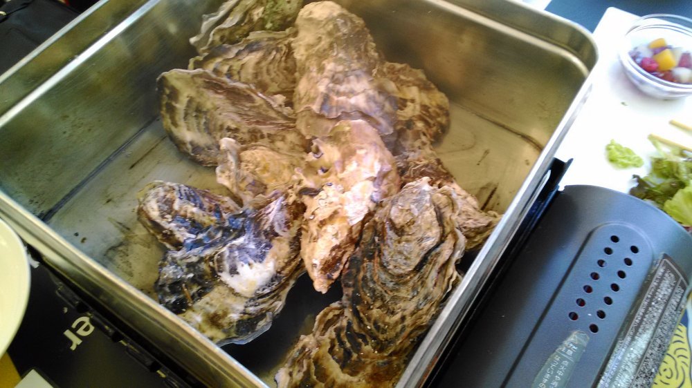 本年のお礼参り 盆栽はわからないが 中心にあったので、いいのかな?本日は先日少し株で取り戻したので、お礼に再度、牡蠣食べ放題にきました。 広島牡蠣で粒が大きいね! 昼間から店内は満員、行列とは言いませんが、外ではかなり並んでいるようでした。