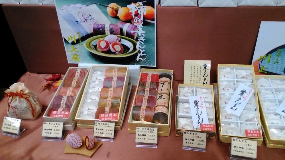 全部飲み放題!、食べ放題!、、、11時~14時まで お土産はこれ 「↑」 ちょっと?豪華に柿の美きんとん 市田柿で栗きんとんを挟んでいる贅沢な品 巫女さんが鈴でお祓いしていました^^