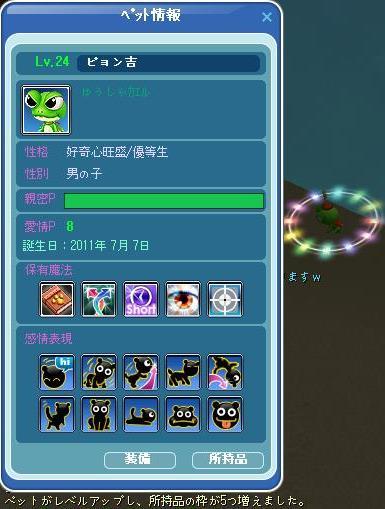 ペットレベUPぉめ゚+。:.゚ヽ(*´∀`)ノ゚.:。+゚れ㌧