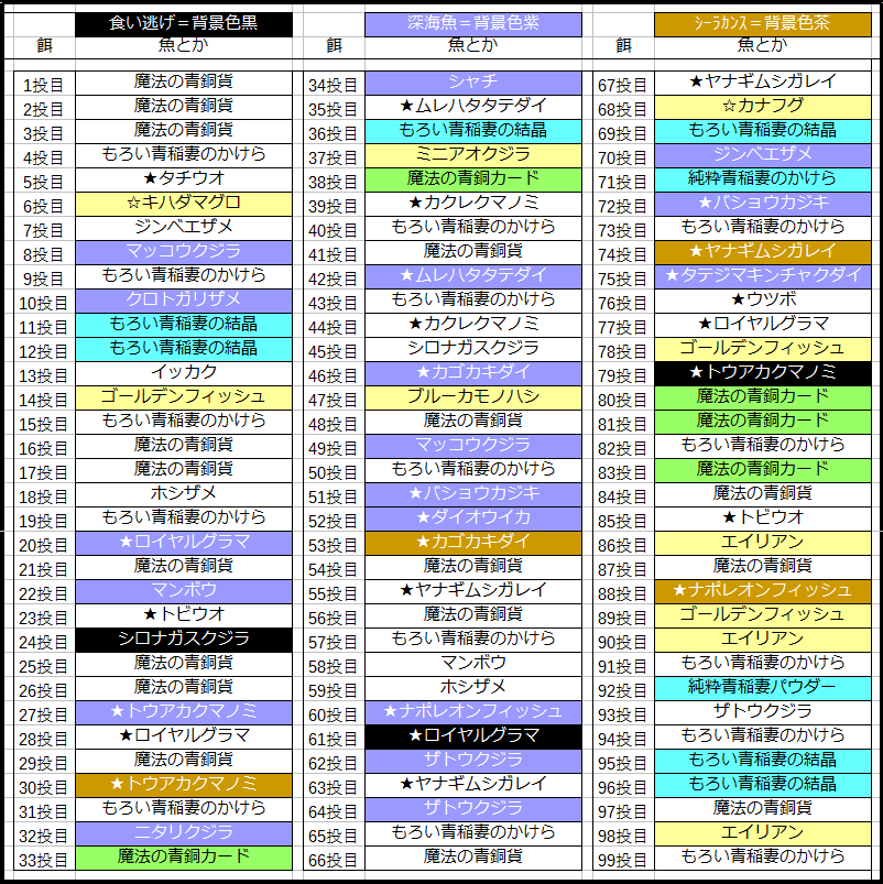 順表では魚、材料共に固まって来てる感じがします