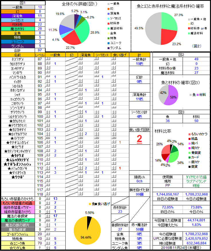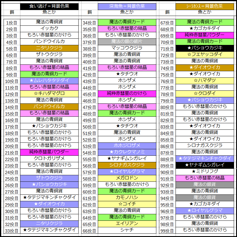 食い逃げは2回、58投目から急に黄色が増えてきて