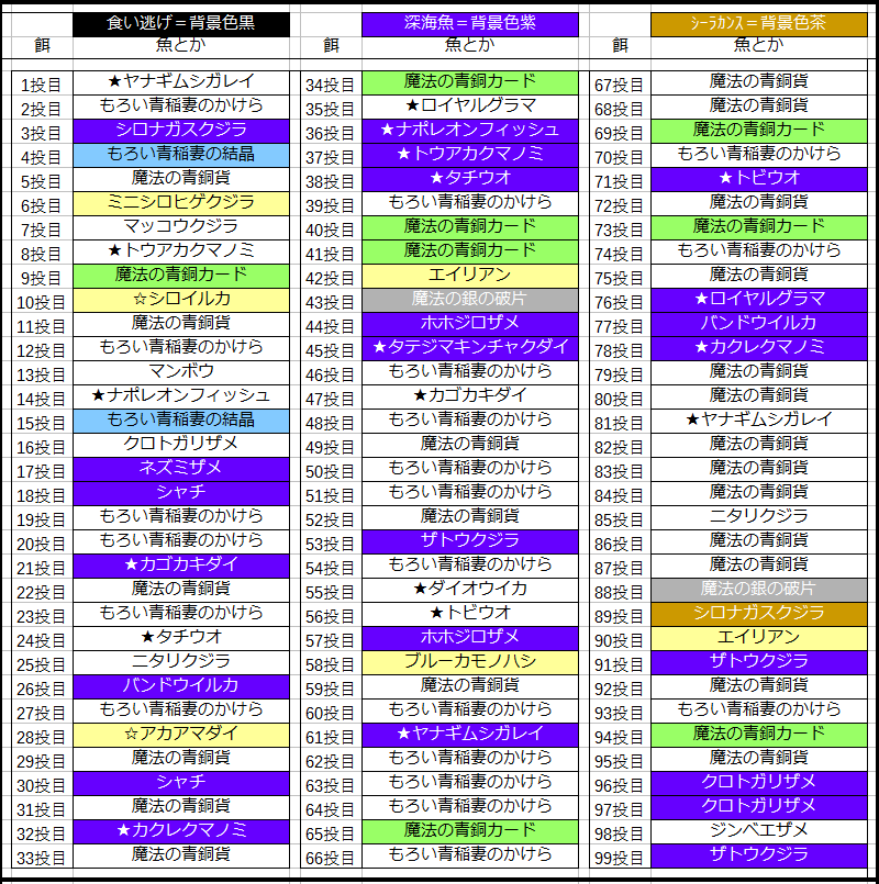 今回は深海多め、黄色少なめ、材料も昨日と似てる?