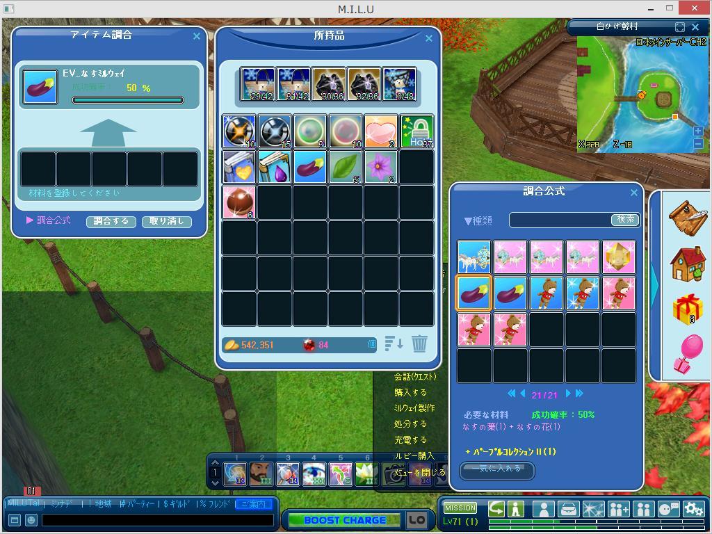 なすのミルウェイできました乗ってみたらなかなかいいですね。これはマックで調合できました。
