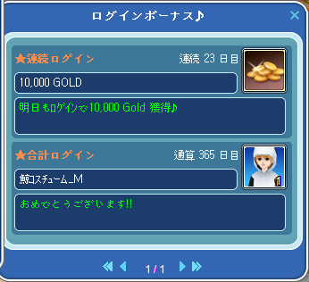 ログイン365日で鯨コスGETしました♪