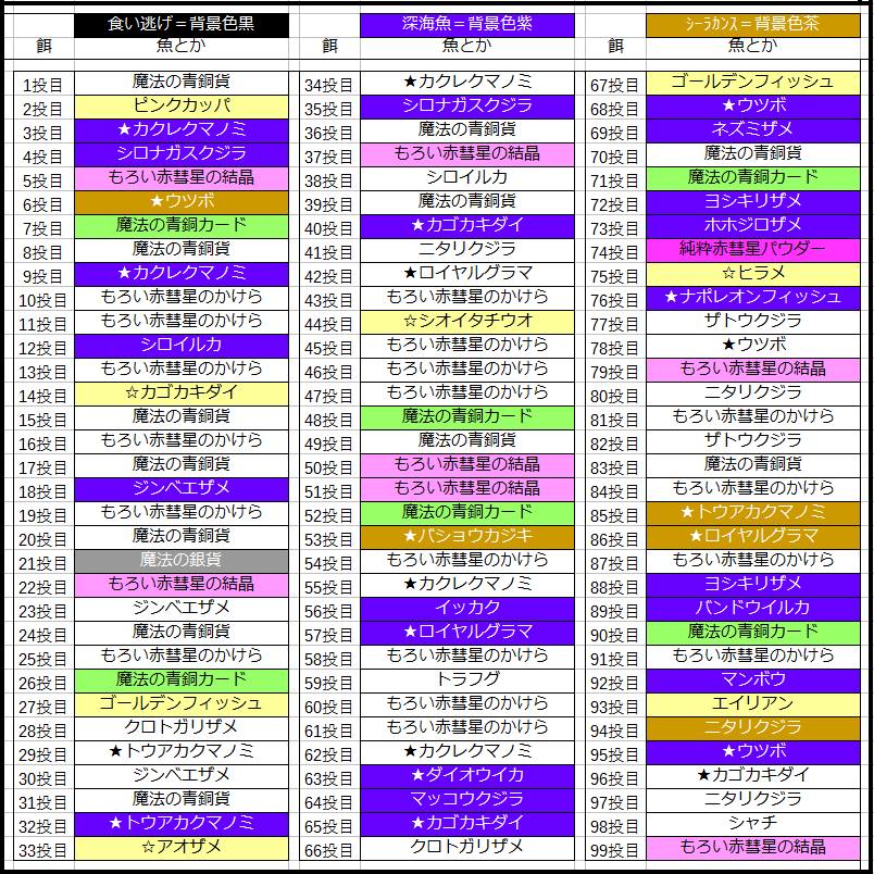 黄色は少なめ、安い子も2匹と半数なのでちょっと美味しくない(精密行き!)