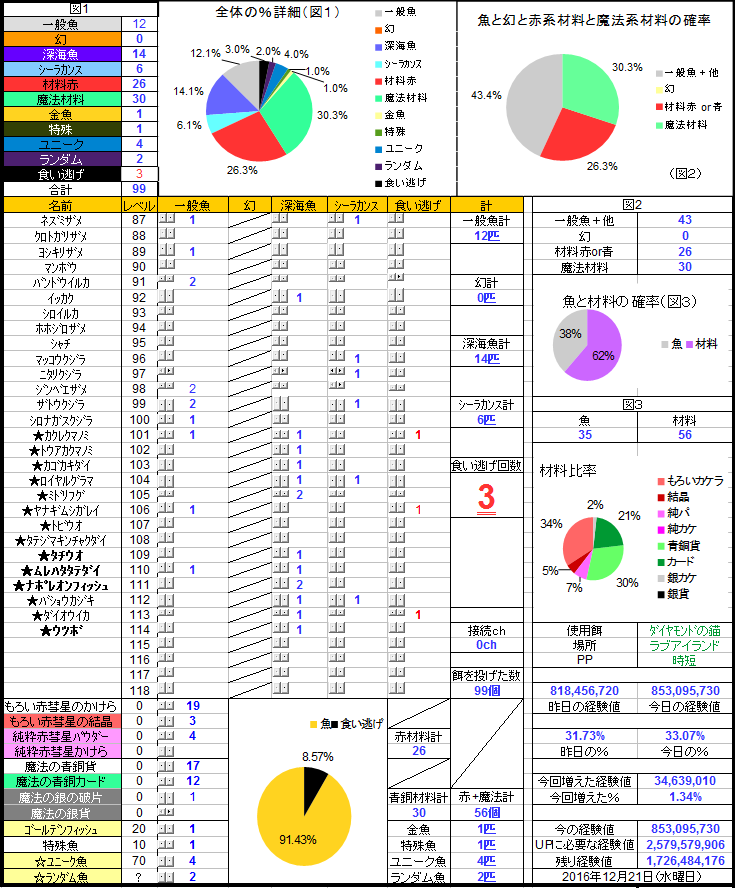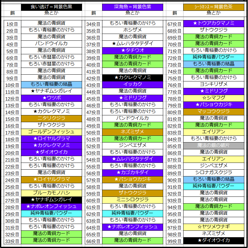 黄色も珍しくユニークの方が多め、鍵魚は・・・まぁいいかな・・・