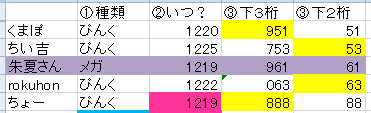 続いて、下3桁・2桁の結果は????