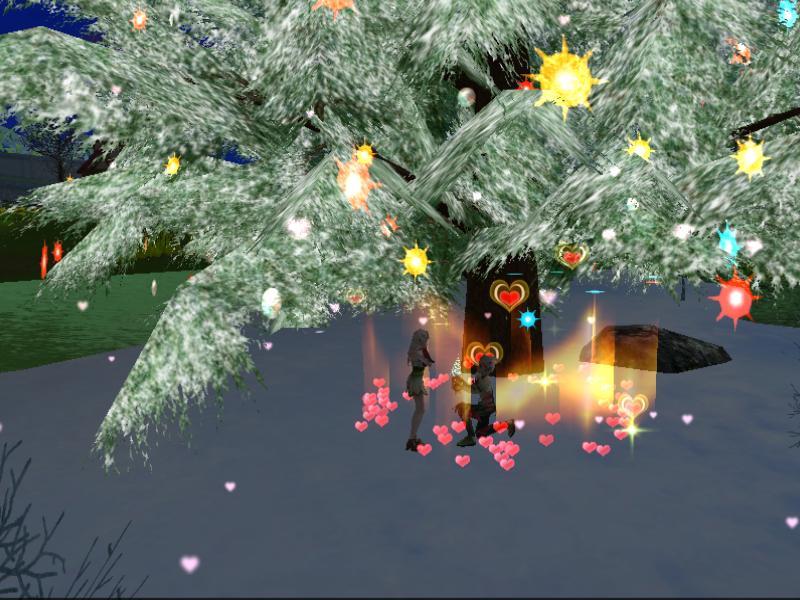 夜サバの大きなツリーの前で