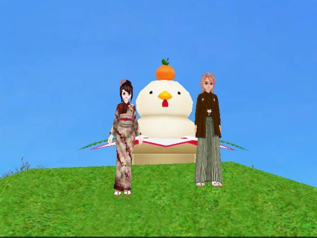 とりさん鏡餅の前 和服で記念お写真すてきですね^^ |