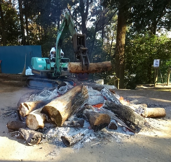 すごい神社ですな@@重機で大木燃やしてwww